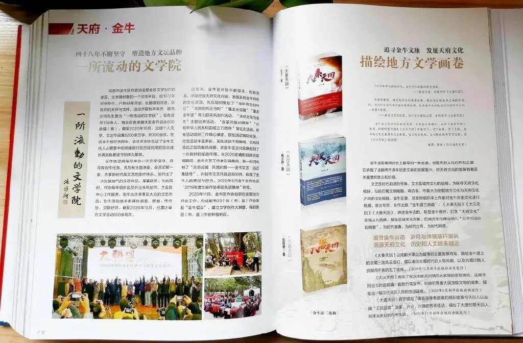 “文学可以保养一方精神,促进一区文明,推进和建设有信心有诗意的生活”。“中国地方文学发展”已成为了新时代中国文学发展研究的新领域和新篇章。金牛区作家协会是金牛区文学创作的家园,是全区文学爱好者的一个活动平台,属区文联的核心团队,自1972年初创至今,已有49年历史,长期得到区委、区政府的关怀与支持,活动开展有声有色,被流沙河先生誉为“一所流动的文学院”。金牛区作协主席杨君伟自组织工作以来,这所“流动的文学院”始终坚守初心,在传承创新中不断发展。