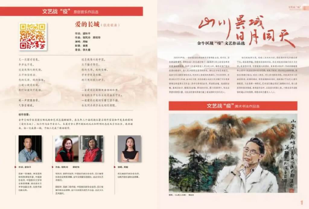 2020年1月至4月,收到文学作品400余件、书法作品80余幅、绘画作品80余幅、篆刻作品10余方、摄影作品200余幅、原创音乐作品5首,累计近800件,精选整理后,线上发布300篇(首)专题文稿,并集结文艺战疫专刊一册,用真情倾注,用文字传情,用笔墨赞颂,传达出厚重的情感力量,为抗击疫情的英雄们献上最诚挚的支持与关心,也让社会看到了金牛文艺工作者的热血和担当。