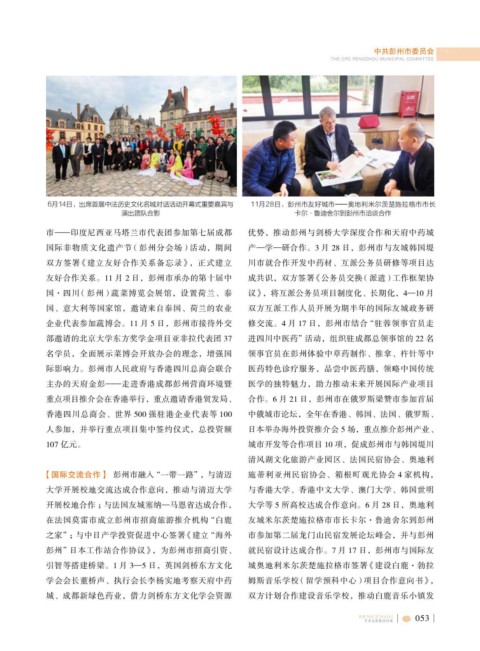 6月14日,出席首届中法历史文化名城对话活动开幕式重要嘉宾与 11月28日,彭州市友好城市——奥地利米尔茨楚施拉格市市长