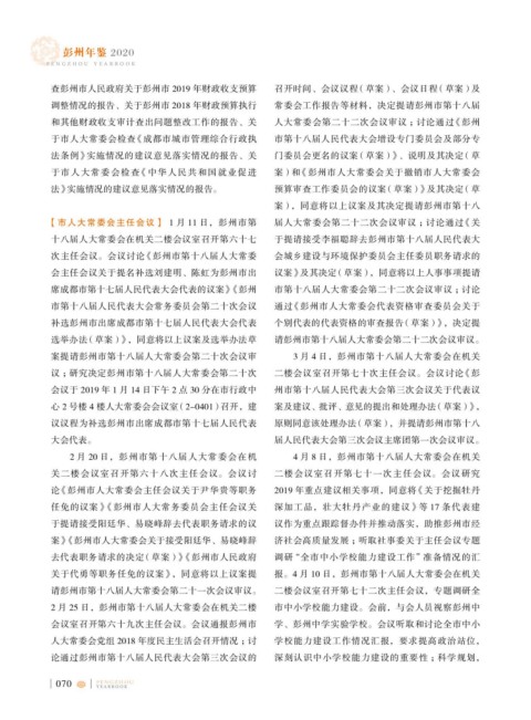2 月 20 日,彭州市第十八届人大常委会在机 4 月 8 日,彭州市第十八届人大常委会在机关