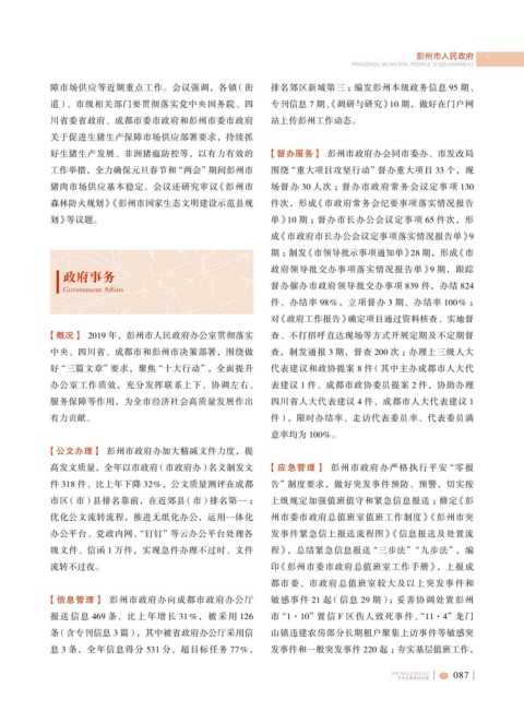 高发文质量,全年以市政府 (市政府办)名义制发文 【应急管理】 彭州市政府办严格执行平安 “零报