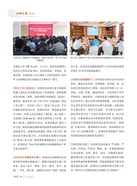 5月29日,成都市2019全面建设 “群众工作之家” 第一次片区现 7月12日,成都市2019年上半年初信初访办理质量分析交流彭州片会