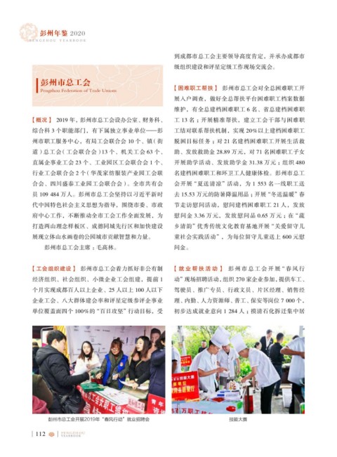 【概况】 2019 年,彭州市总工会设办公室、财务科、 工 13 名 ;开展精准帮扶,建立工会干部与困难职