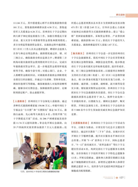 值 11.74 万元慰问款物 ;常态化开展应急救助,向 【志愿服务活动】 彭州市红十字会以红十字活动为