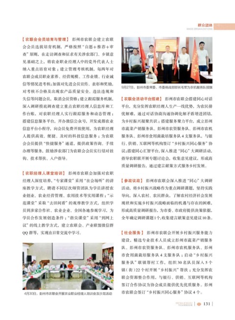 QQ 群等,实现在日常交流中学习。 【社会服务】 彭州市农联会开展乡村振兴服务能力