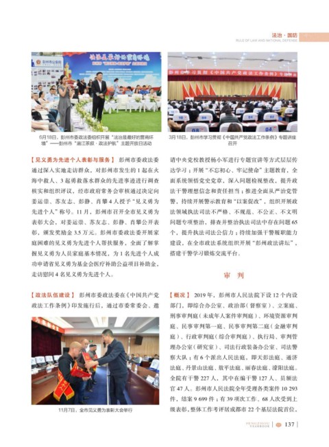 【政法队伍建设】 彭州市委政法委在 《中国共产党 【概况】 2019 年,彭州市人民法院下设 12 个内设