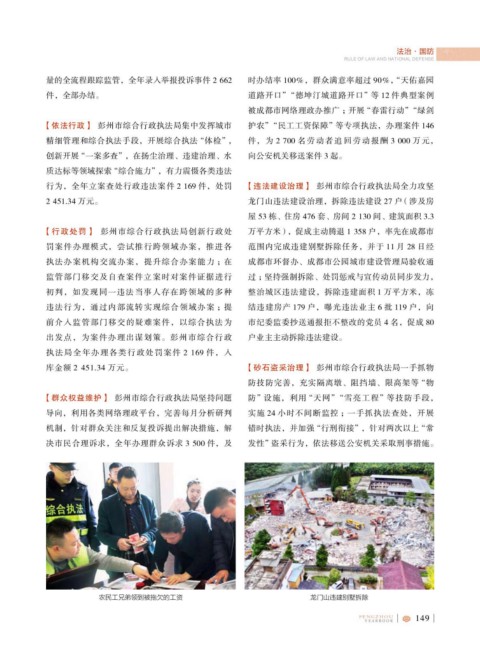行为,全年立案查处行政违法案件 2 169 件,处罚 【违法建设治理】 彭州市综合行政执法局全力攻坚