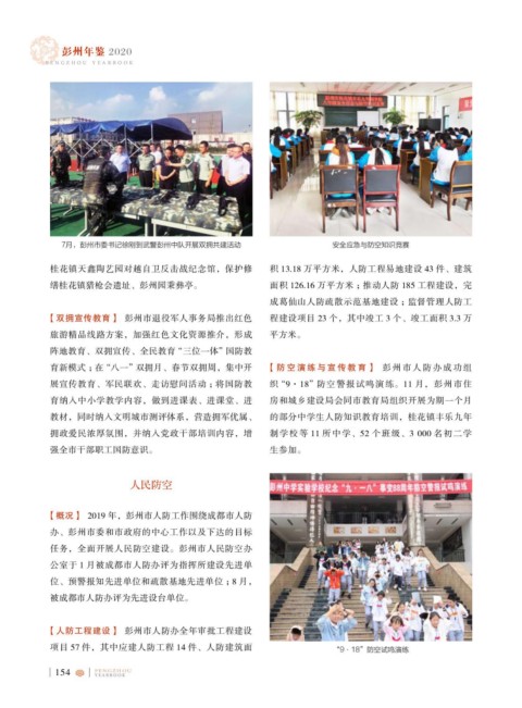 展宣传教育、军民联欢、走访慰问活动 ;将国防教 织 “9·18”防空警报试鸣演练。11 月,彭州市住
