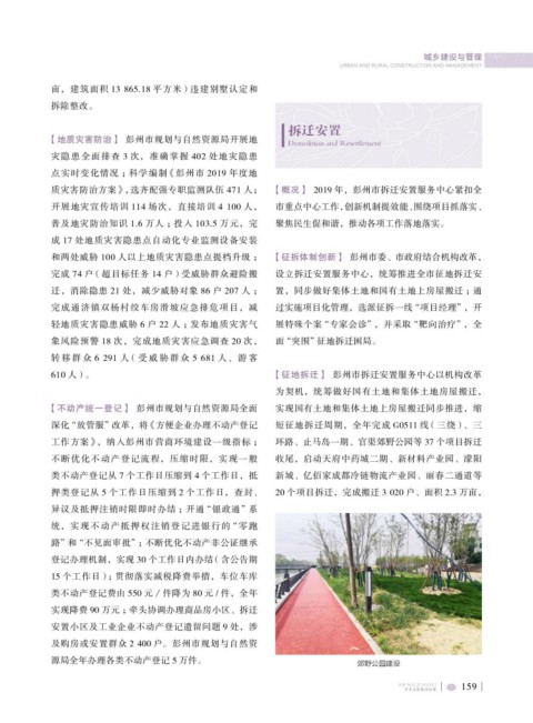 质灾害防治方案》,选齐配强专职监测队伍 471 人; 【概况】 2019 年,彭州市拆迁安置服务中心紧扣全