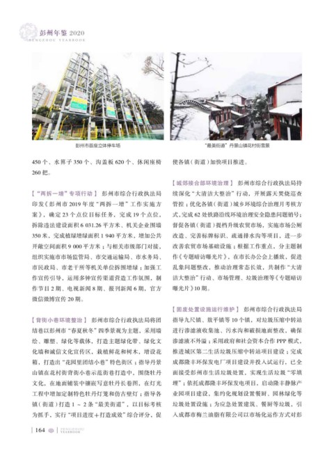 【背街小巷环境整治】 彭州市综合行政执法局将团 指导九尺镇、敖平镇等 10 个镇,对垃圾压缩中转站
