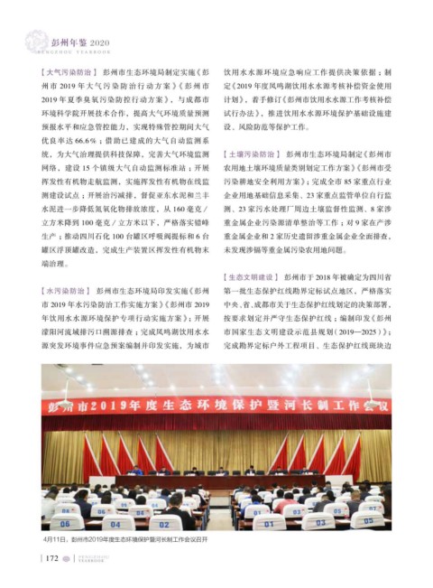 2019 年夏季臭氧污染防控行动方案》,与成都市 计划》,着手修订 《彭州市饮用水水源工作考核补偿