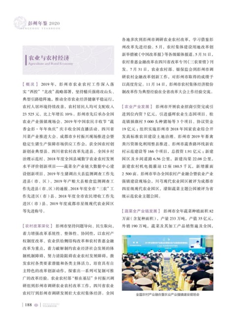 【概况】 2019 年,彭州市农业农村工作深入落 以高度肯定。11 月 14 日,彭州市农村集体经济股份