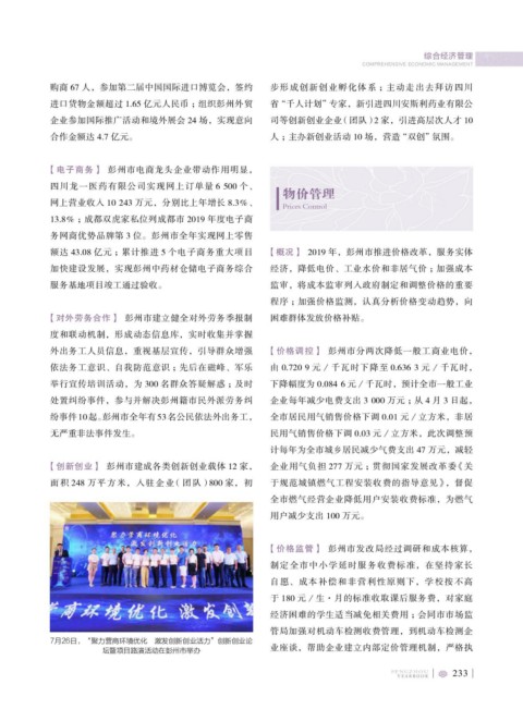 额达 43.08 亿元 ;累计推进 5 个电子商务重大项目 【概况】 2019 年,彭州市推进价格改革,服务实体