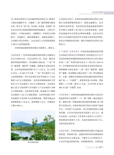 企业提供 3 126 万元贷款担保,为彭州市湔江河谷 【代偿清收】 彭州市创业融资担保有限公司业务代