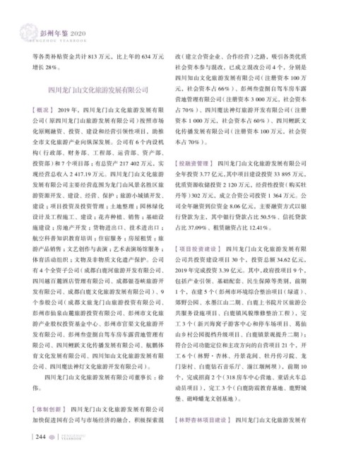 四川龙门山文化旅游发展有限公司 元,社会资本占 66%)、彭州叁壹捌自驾车房车露