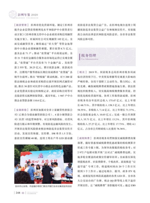 率、注册用户数等指标长期位居成都市 “农贷通”县 【概况】 2019 年,国家税务总局彭州市税务局面