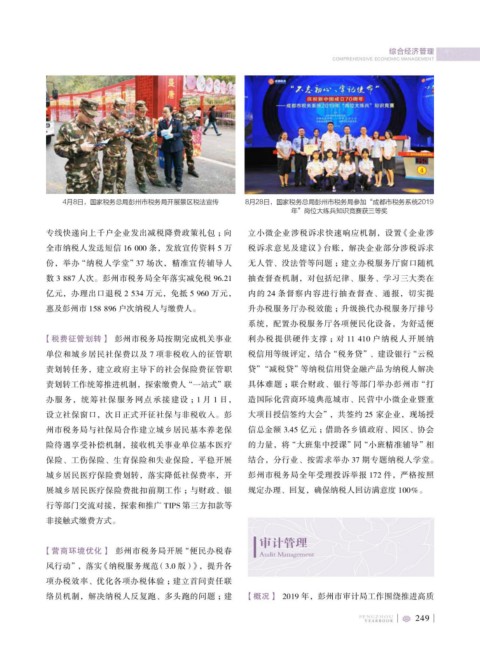 络员机制,解决纳税人反复跑、多头跑的问题 ;建 【概况】 2019 年,彭州市审计局工作围绕推进高质