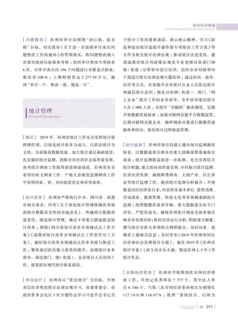 案》,做好统计改革全领域试点任务承接与推进工 经济和社会发展统计公报》,编发 2019 年 《彭州市