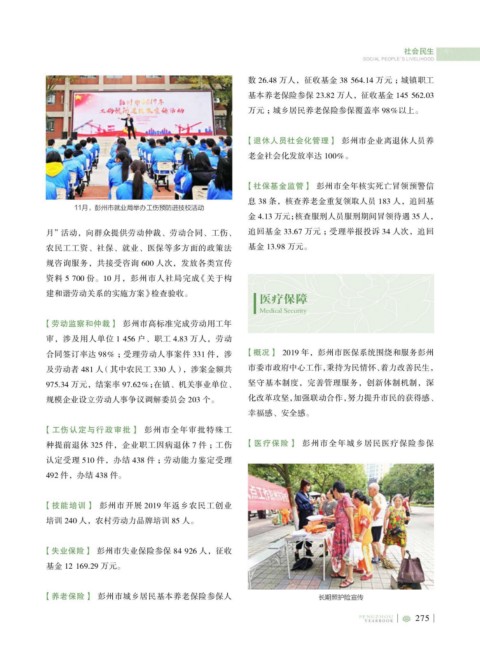合同签订率达 98% ;受理劳动人事案件 331 件,涉 【概况】 2019 年,彭州市医保系统围绕和服务彭州
