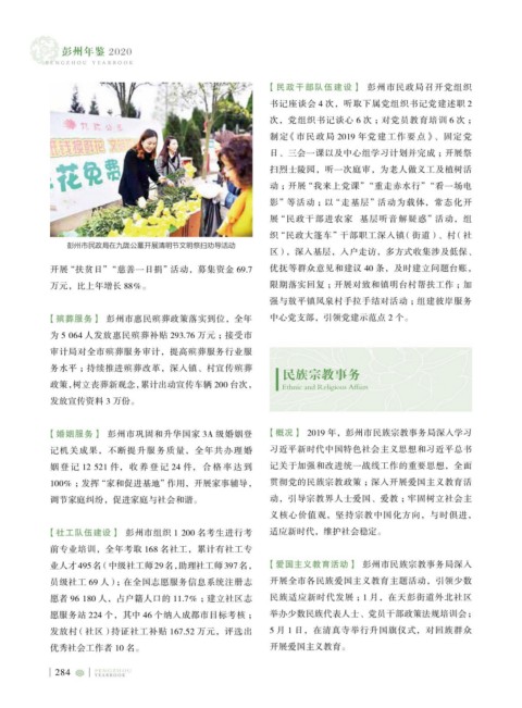 【婚姻服务】 彭州市巩固和升华国家 3A 级婚姻登 【概况】 2019 年,彭州市民族宗教事务局深入学习