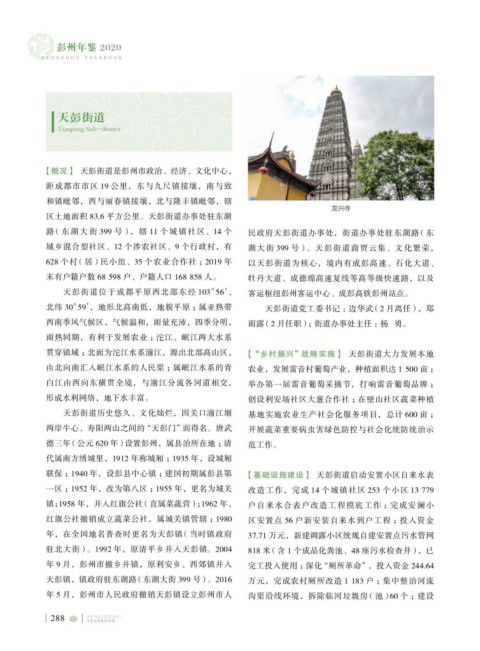 【概况】 天彭街道是彭州市政治、经济、文化中心,