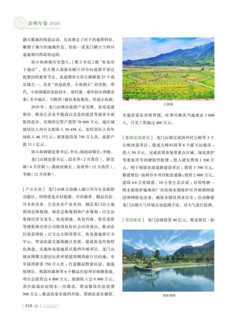 纯收入 46 372 元 ;游客接待量 750 万人次,旅游产 【基础设施建设】 龙门山镇完成国坪村公厕等 3 个