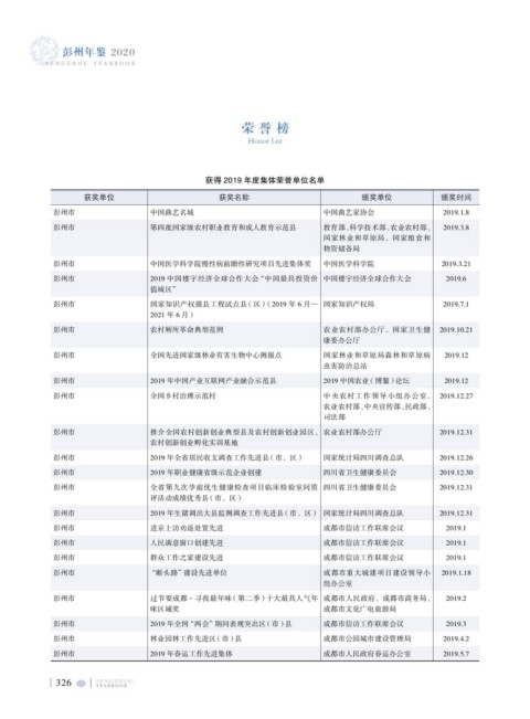 彭州市 全国乡村治理示范村 中央农村工作领导小组办公室、 2019.12.27