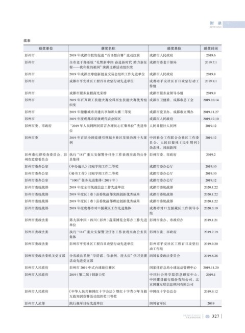 彭州市委 2019 年首届全国党建引领城乡社区发展治理十大案 中国社会工作联合会社区工作委 2019.12