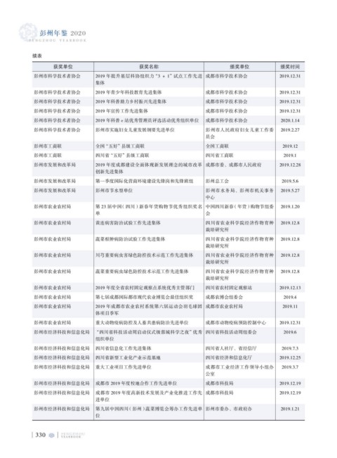 彭州市科学技术者协会 2019 年科普助力乡村振兴先进集体 成都市科学技术协会 2019.12.31