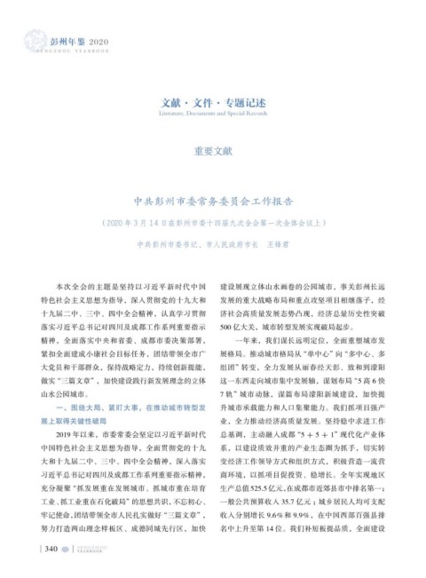 (2020 年 3 月 14 日在彭州市委十四届九次全会第一次全体会议上)