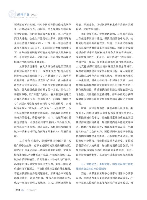 下,彭州经济发展将不可避免地受到较大压力和挑 建设公园城市示范区和城乡融合发展改革试验区。