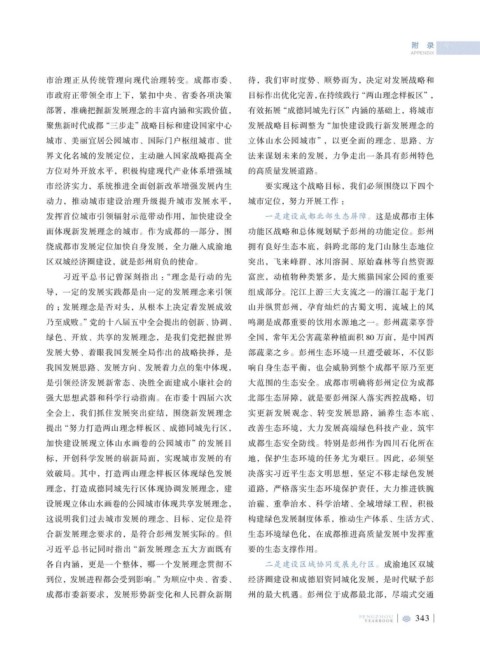 面体现新发展理念的城市。作为成都的一部分,围 功能区战略和总体规划赋予彭州的功能定位。彭州