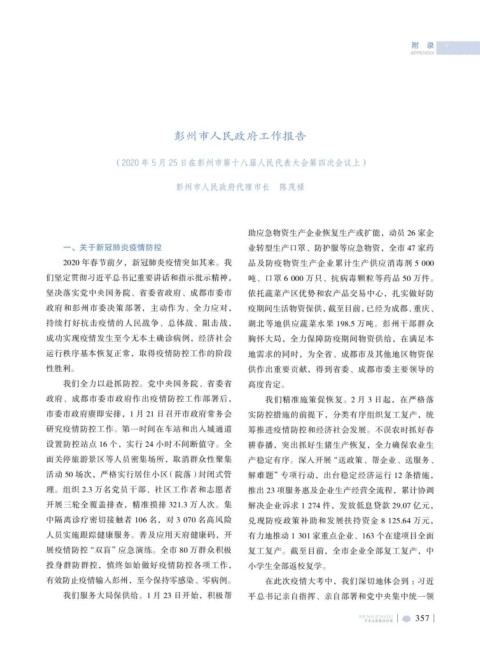 (2020 年 5 月 25 日在彭州市第十八届人民代表大会第四次会议上)
