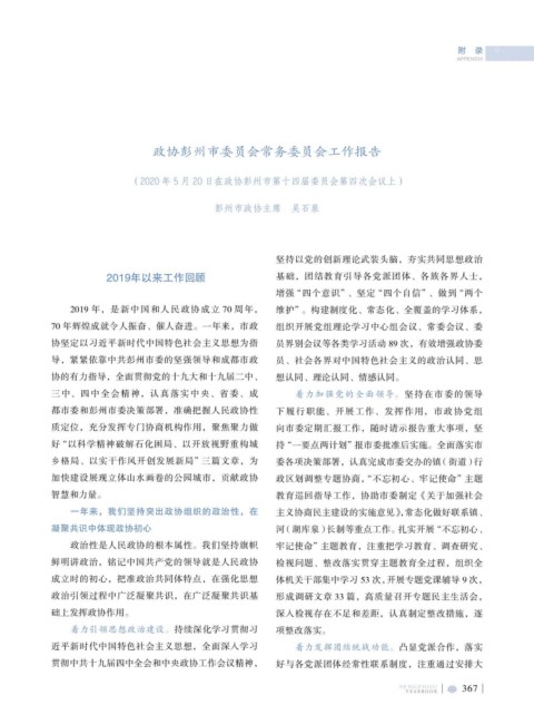 (2020 年 5 月 20 日在政协彭州市第十四届委员会第四次会议上)