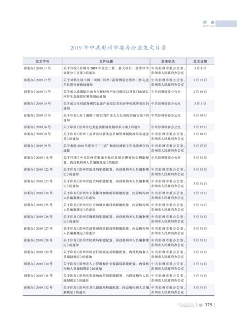 2019 年中共彭州市委办公室发文目录