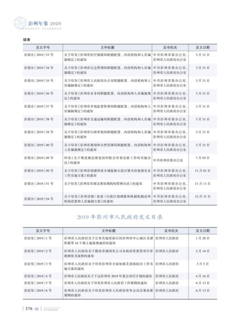 彭委办 〔2019〕34 号 关于印发 《彭州市应急管理局职能配置、内设机构和人员编 中共彭州市委办公室、 3月31日