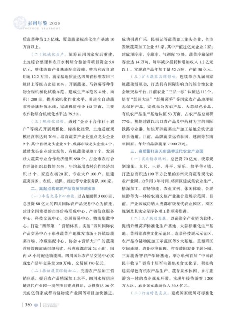 积 1 200 亩。提升农机化作业水平,引进全自动蔬 培育 “彭州大蒜” “彭州莴笋”等国家农产品地理标