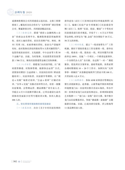 民宿策划、会管理运营、擅品牌推广的专业人才。 环境暨龙门山·民宿项目推介活动 6 场次,举办中