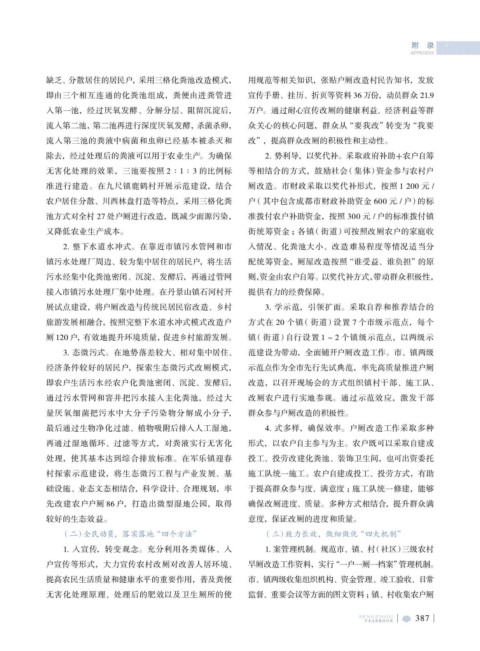 旅游发展相融合,按照完整下水道水冲式模式改造户 方式在 20 个镇 (街道)设置 7 个市级示范点,每个