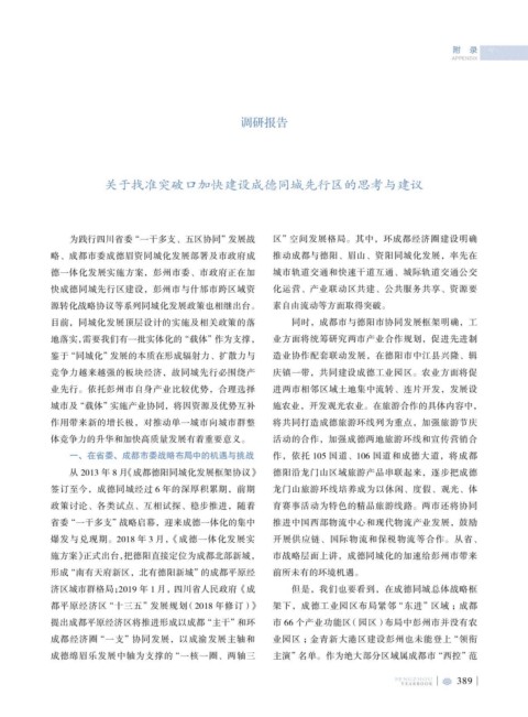 关于找准突破口加快建设成德同城先行区的思考与建议