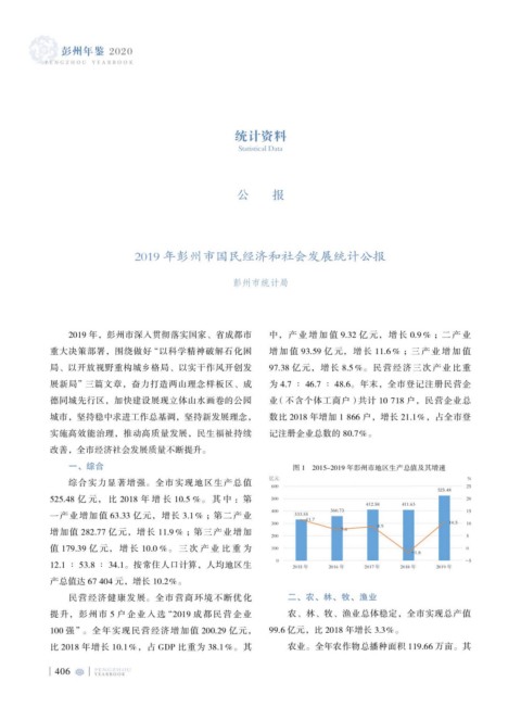 一、综合 图 1 2015-2019 年彭州市地区生产总值及其增速
