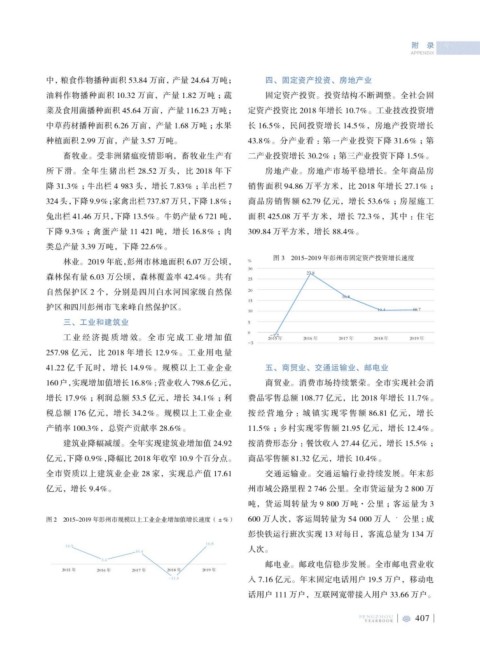 林业。2019 年底,彭州市林地面积 6.07 万公顷, % 图 3 2015-2019 年彭州市固定资产投资增长速度