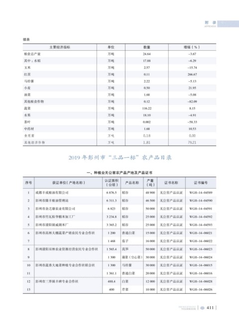 2 彭州市隆丰粮油管理站 6 311.3 稻谷 46 500 无公害产品认证 WGH-14-04590