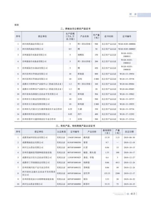 9 成都日兴特种水产试验中心(普通合伙企业) 1.2 鳟 20 无公害产品认证 WGH-04-05085