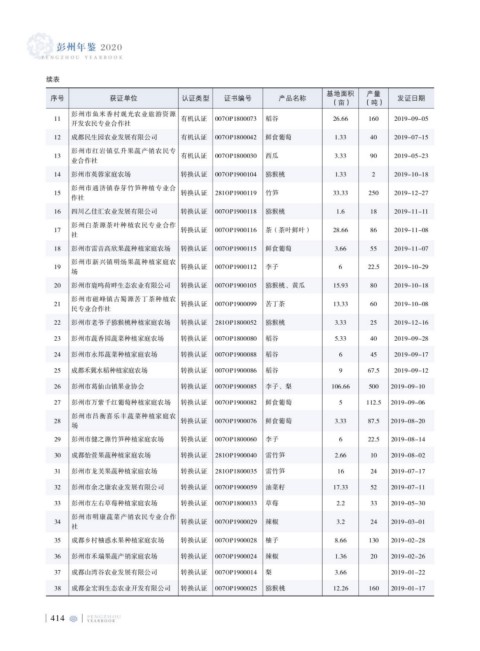 22 彭州市老爷子猕猴桃种植家庭农场 转换认证 281OP1800052 猕猴桃 3.33 25 2019-12-16
