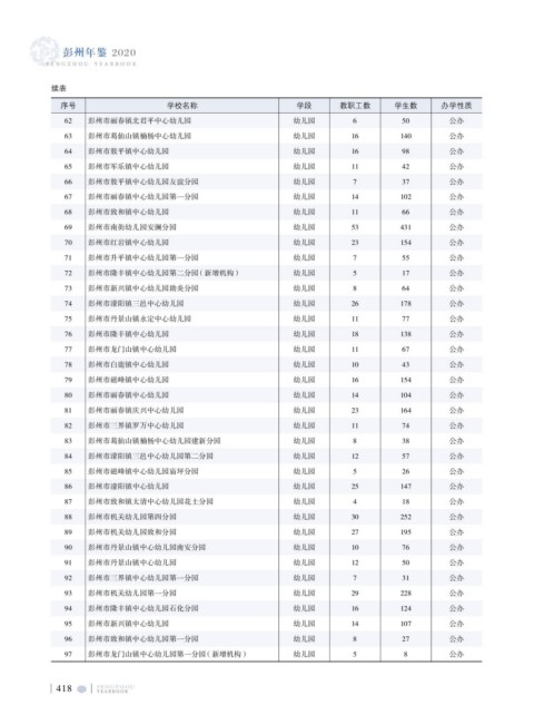 63 彭州市葛仙山镇楠杨中心幼儿园 幼儿园 16 140 公办
