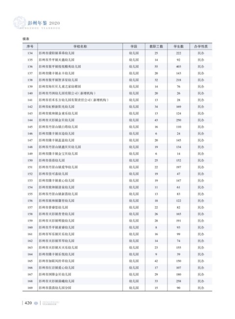 137 彭州市隆丰镇永丰幼儿园 幼儿园 20 143 民办