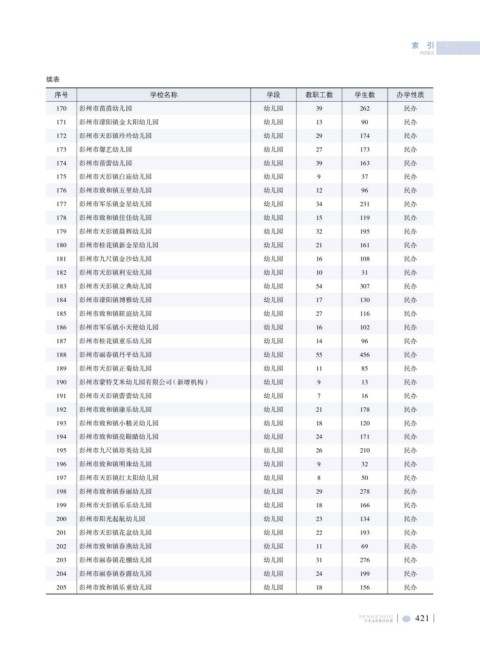 170 彭州市苗苗幼儿园 幼儿园 39 262 民办