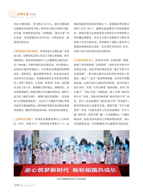 位、社区、村镇 33 个,彭州市级文明单位 7 个 ;实 向党歌咏活动、向国旗敬礼等主题教育实践活动,