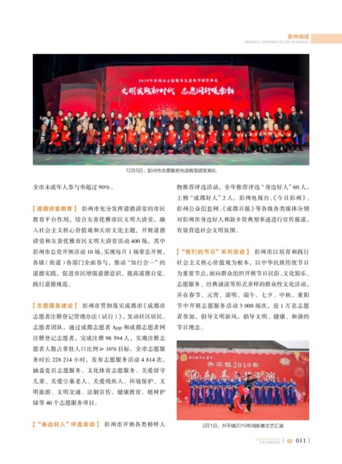 【志愿服务建设】 彭州市贯彻落实成都市 《成都市 节中开展志愿服务活动 3 000 场次,近 1 万名志愿